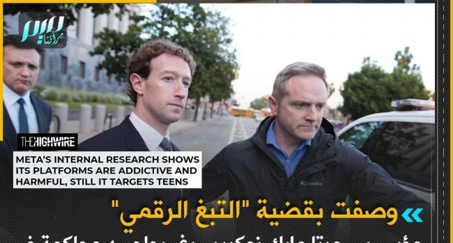 موقع ذا هايواير: مؤسس ميتا مارك زوكربيرغ يواجه محاكمة في لوس أنجلوس، بعد أن كشفت وثائق داخلية أن إنستغرام يسبب الإدمان ويلحق أضرارا بالصحة النفسية للمراهقين والأطفال، وتجاهل الشركة رغم ذلك كل المخاطر، مواصلة البحث عن طرق لجعل المنصة أكثر جاذبية، و زيادة التفاعل.