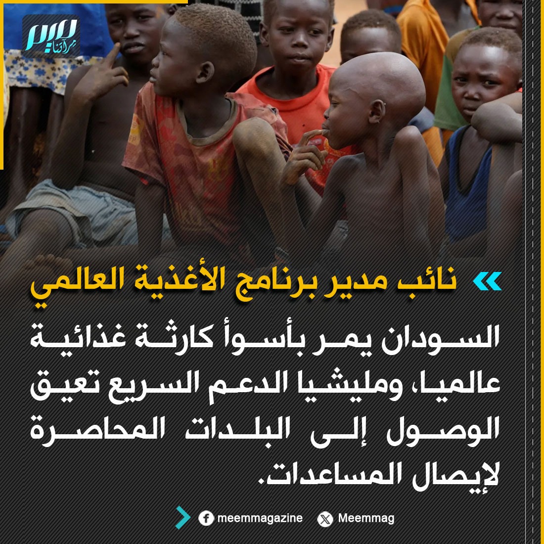 نائب مدير برنامج الأغذية العالمي: السودان يمر بأسوأ كارثة غذائية عالميا، ومليشيا الدعم السريع تعيق الوصول إلى البلدات المحاصرة لإيصال المساعدات.