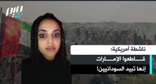 ناشطة أمريكية: "علينا مقاطعة الإمارات العربية المتحدة. إنها تسلّح الحرب الدائرة في السودان. مئات آلاف النساء تعرّضن للاغتصاب والتعذيب، وملايين الناس شُرّدوا وقُتلوا، والإمارات شريك في ذلك. لا يمكننا دعم حكومة ترتكب إبادة. وأي حكومة ترتكب إبادة، علينا مقاطعتها!"