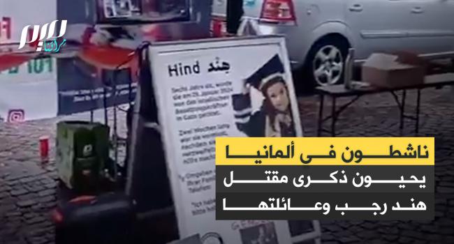 "رافعين شعارات تطالب بمحاسبة المجرمين".. ناشطون في مدينة دارمشتات الألمانية يحيون الذكرى السنوية الثانية لمقتل الطفلة الفلسطينية هند رجب وعائلتها على يد قوات الاحتلال.