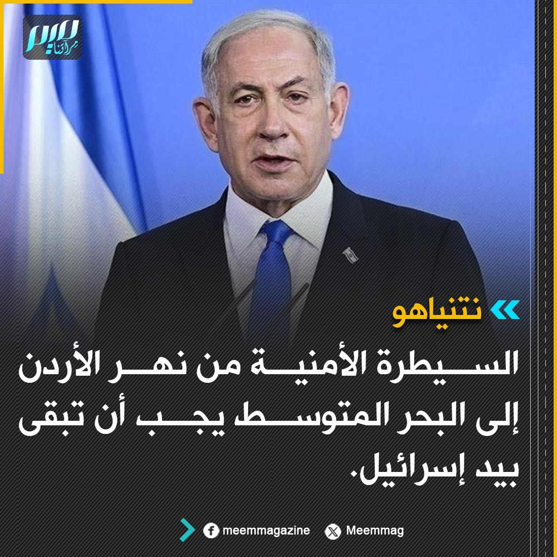 نتنياهو: السيطرة الأمنية من نهر الأردن إلى البحر المتوسط يجب أن تبقى بيد إسرائيل.