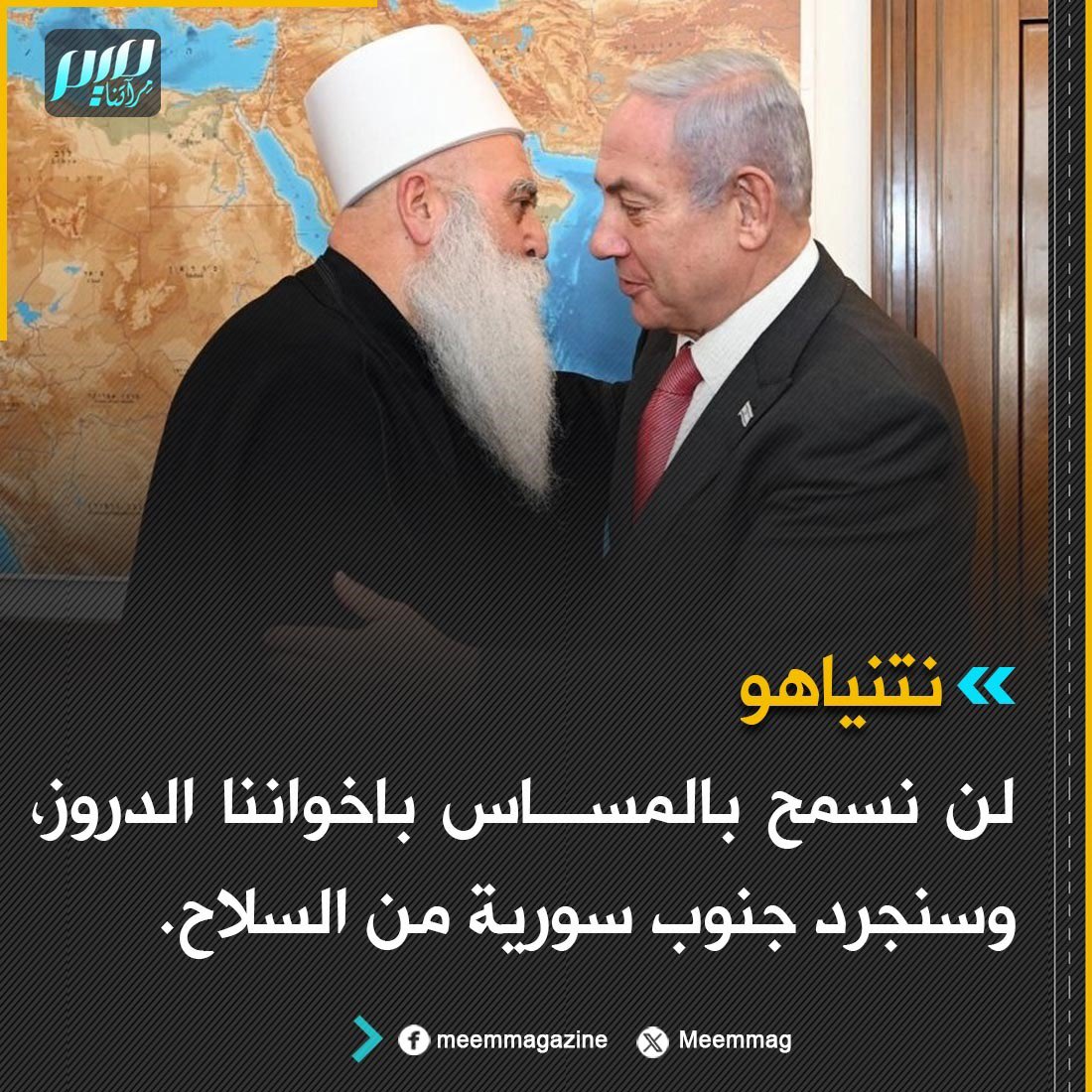 نتنياهو: لن نسمح بالمساس باخواننا الدروز، وسنجرد جنوب سورية من السلاح.