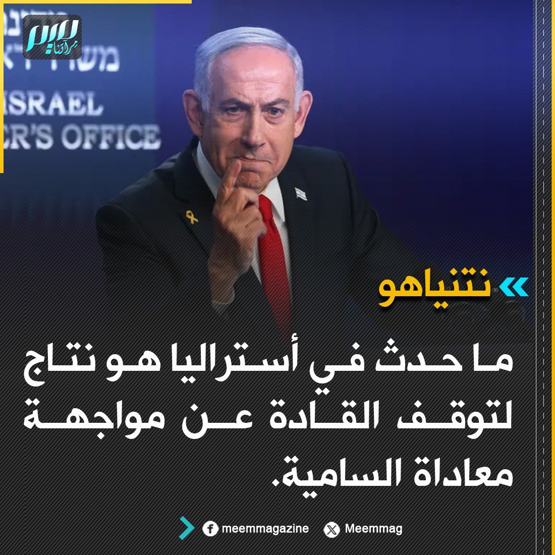 رئيس الحكومة الإسرائيلية بنيامين نتنياهو يعقب على هجوم سيدني الذي أسفر عن مقتل 12 شخصا نحو 30 آخرين، خلال احتفالات "الحانوكا" اليهـ.ـودي.