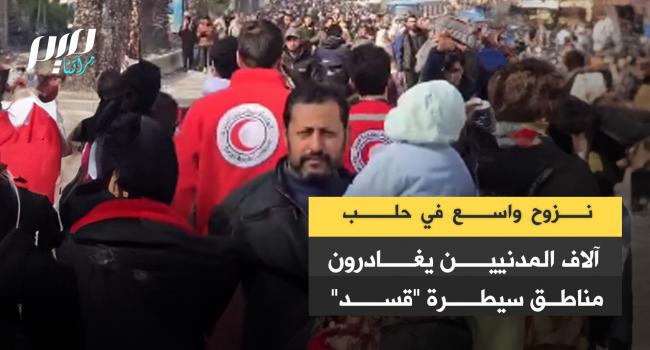 مشاهد توثّق خروج آلاف المدنيين من حيي الشيخ مقصود والأشرفية بمدينة حلب، ومغادرتهم مناطق سيطرة "قسد" باتجاه المناطق الخاضعة لسيطرة الدولة السورية.