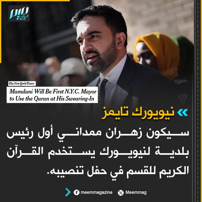 نيويورك تايمز: سيكون زهران ممداني أول رئيس بلدية لنيويورك يستخدم القرآن الكريم للقسم في حفل تنصيبه.