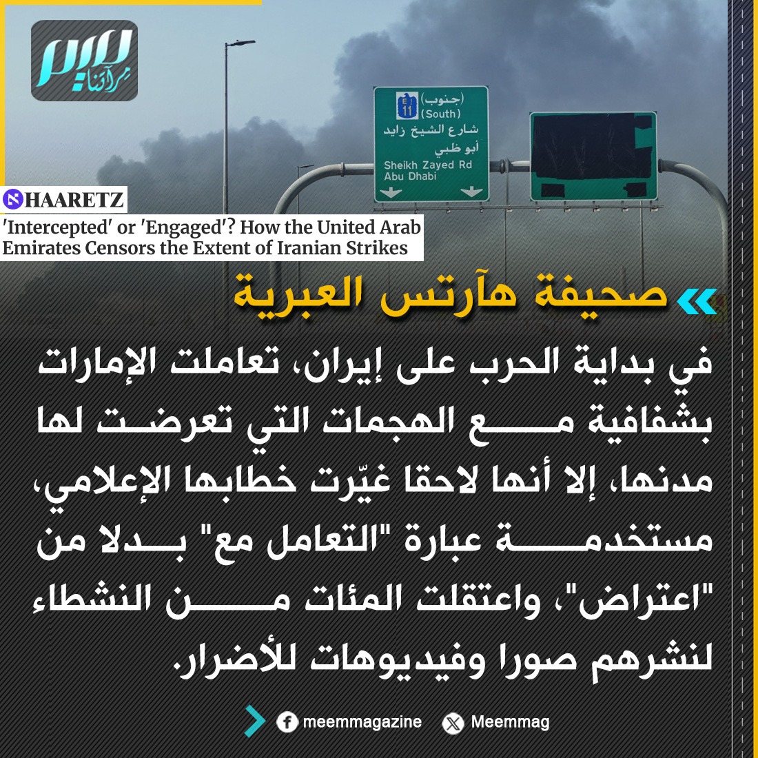 هآرتس العبرية: في بداية الحرب على إيران، تعاملت الإمارات بشفافية مع الهجمات التي تعرضت لها مدنها، إلا أنها لاحقا غيّرت خطابها الإعلامي
