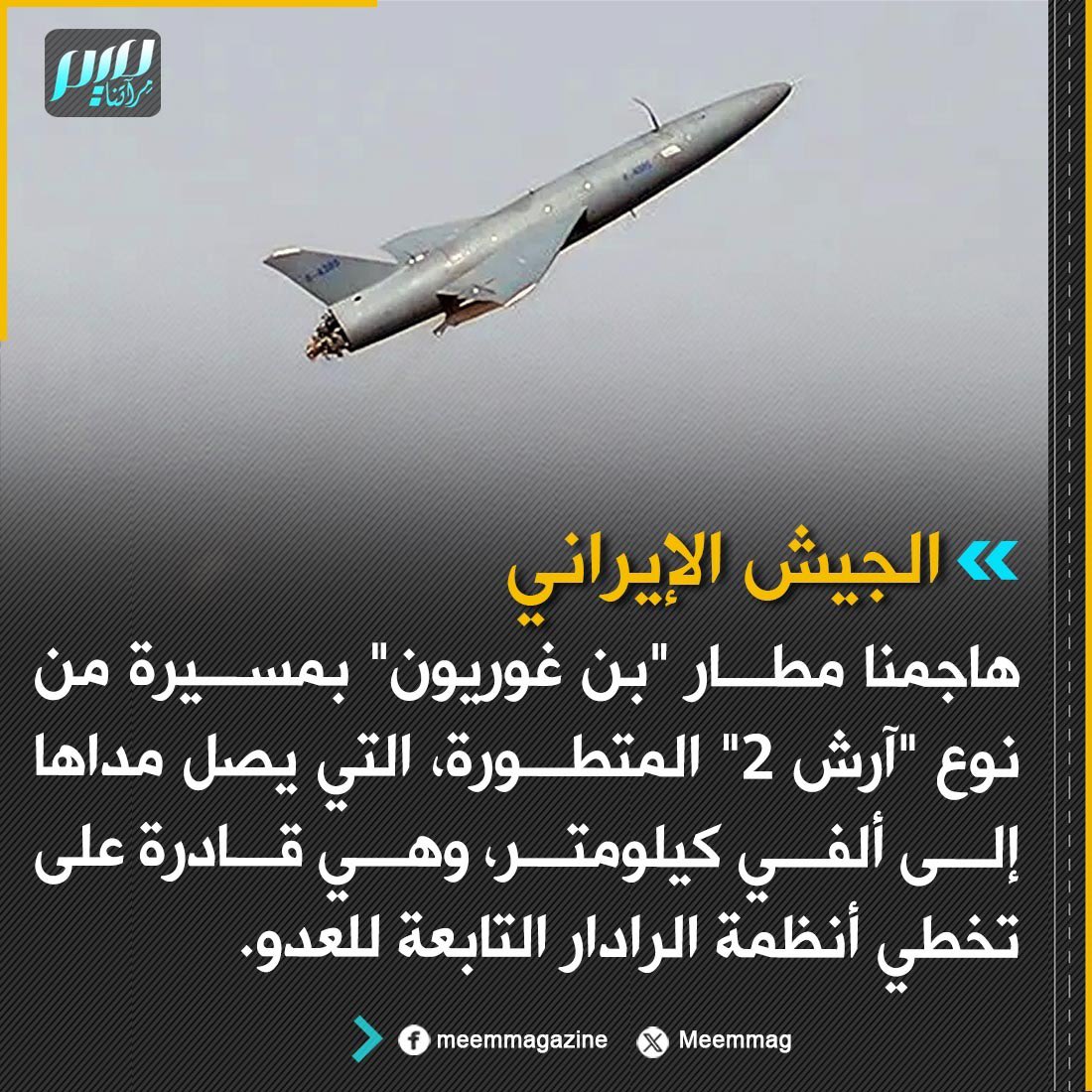 هاجمنا مطار "بن غوريون" بمسيرة من نوع "آرش 2" المتطورة