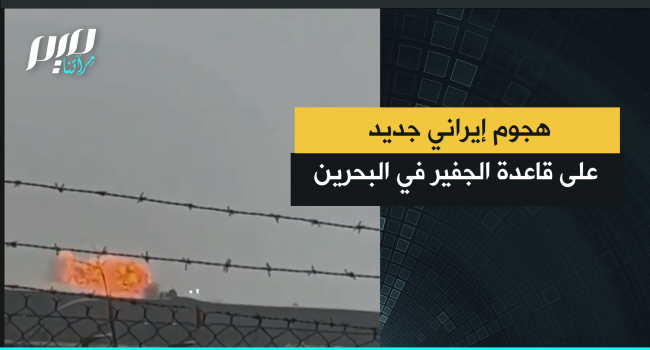 مشاهد توثّق إصابة مباشرة لقاعدة الجفير الأمريكية العسكرية في البحرين بطائرة إيرانية مسيرة.