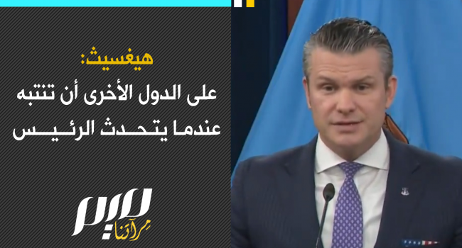 وزير الحرب الأمريكي بيتر بريان هيغسيث: أعتقد أن على الدول الأخرى أن تنتبه عندما يتحدث الرئيس، لقد أثبت أنه عندما يتحدث، فإنه يعني ما يقول، وهو يشير إلى أنه قد يكون من الأفضل أن تبدأوا في تعلّم كيفية الدفاع عن أنفسكم.