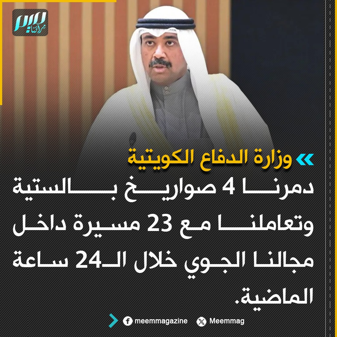 وزارة الدفاع الكويتية: دمرنا 4 صواريخ بالستية