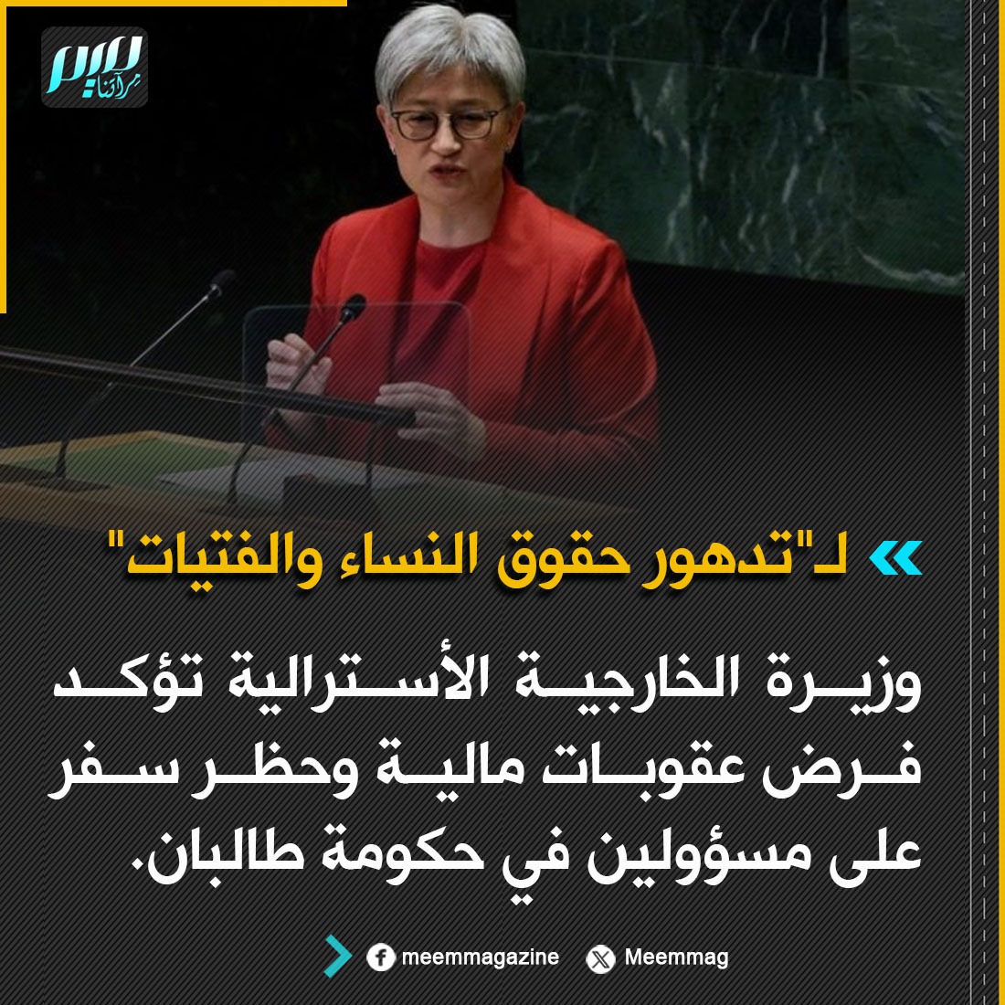 قالت: لتدهور وضع حقوق النساء والفتيات في أفغانستان".. وزيرة الخارجية الأسترالية تؤكد فرض عقوبات مالية وحظر سفر على مسؤولين في حكومة طالبان.