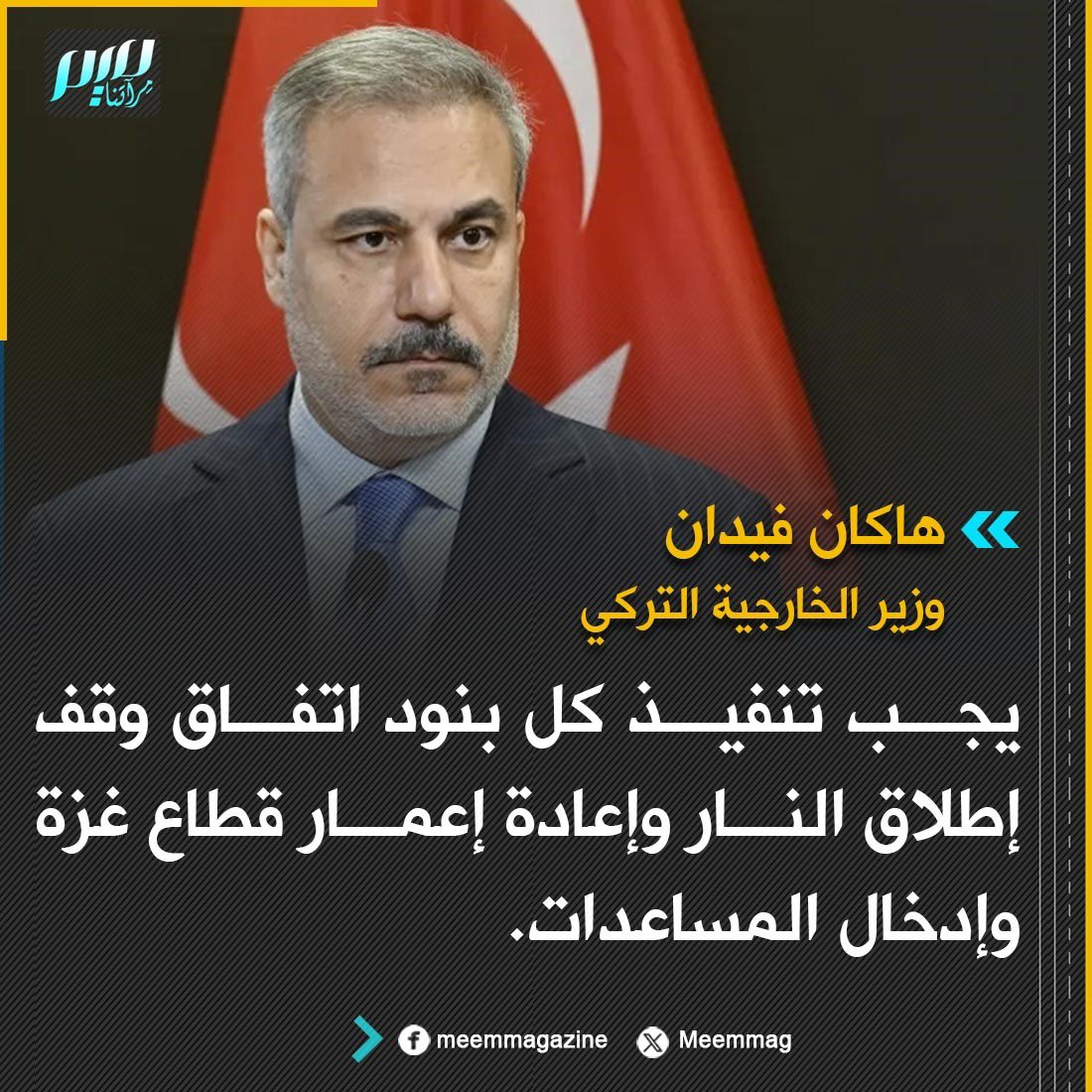 وزير الخارجية التركي: يجب تنفيذ كل بنود اتفاق وقف إطلاق النار وإعادة إعمار قطاع غزة وإدخال المساعدات.
