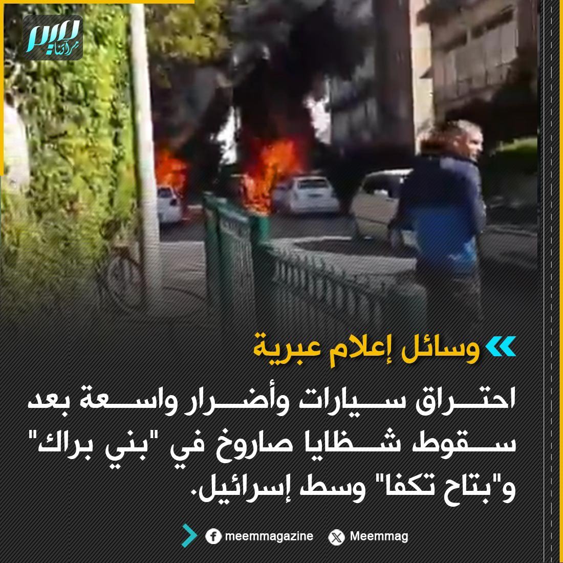 وسائل إعلام عبرية: احتراق سيارات وأضرار واسعة بعد سقوط شظايا صاروخ في "بني براك" "وبتاح تكفا" وسط إسرائيل.