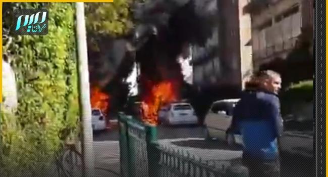 شاهد.. اشتعال النيران في عدة مركبات إثر قصف إيراني…