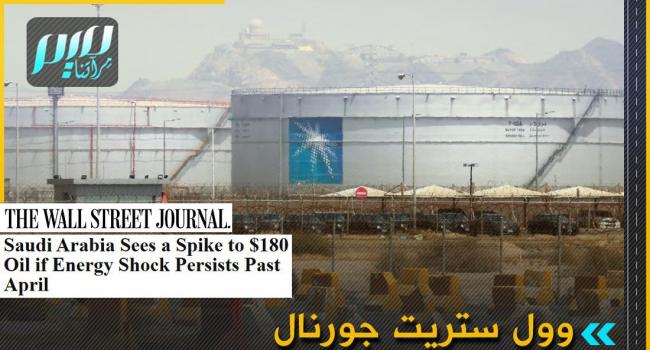 وول ستريت جورنال: السعودية تتوقع أن يرتفع سعر برميل النفط إلى 180 دولارا إذا استمرت الحرب وأزمة النفط لما بعد أبريل.