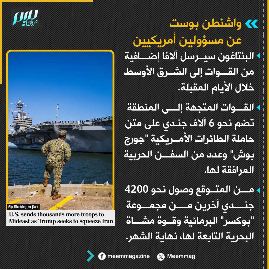 ويأتي قرار إرسال قوات أمريكية إضافية إلى منطقة الشرق الأوسط في محاولة من إدارة ترامب للضغط على إيران للتوصل إلى اتفاق ينهي الحرب.