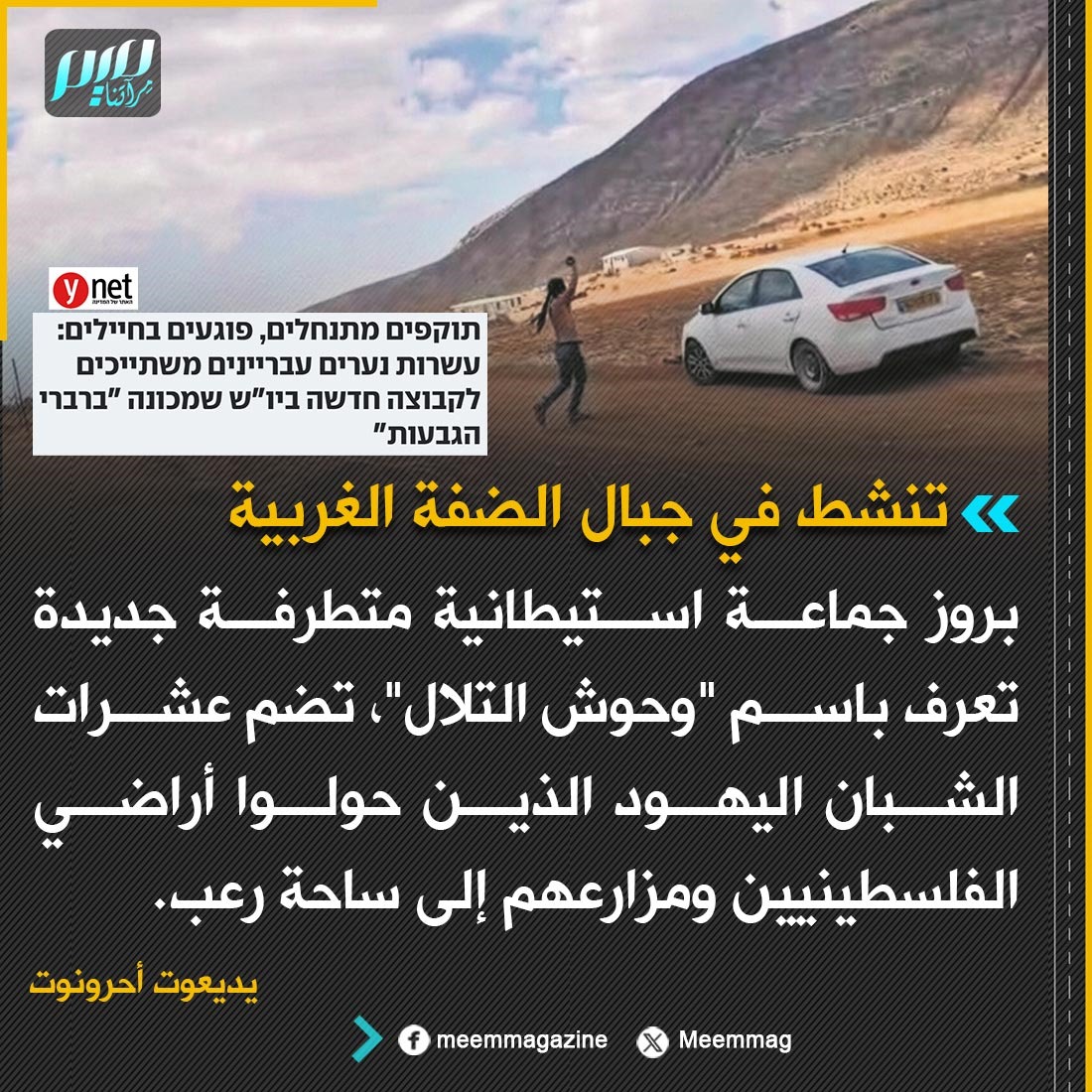 يديعوت أحرونوت: بروز جماعة استيطانية متطرفة جديدة تعرف باسم "وحوش التلال"، تضم عشرات الشبان اليهود الذين حولوا أراضي الفلسطينيين ومزارعهم إلى ساحة رعب.