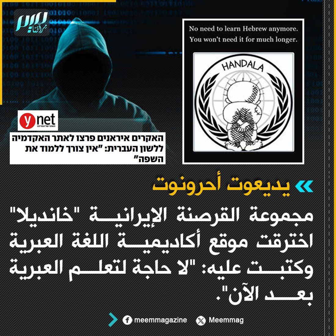 يديعوت أحرونوت: مجموعة القرصنة الإيرانية "خانديلا" اخترقت موقع أكاديمية اللغة العبرية وكتبت عليه: "لا حاجة لتعلم العبرية بعد الآن".