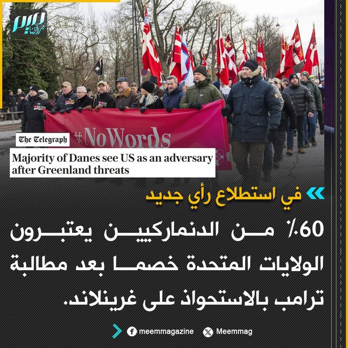 %60 من الدنماركيين يعتبرون الولايات المتحدة خصمًا بعد مطالبة ترامب بالاستحواذ على غرينلاند.