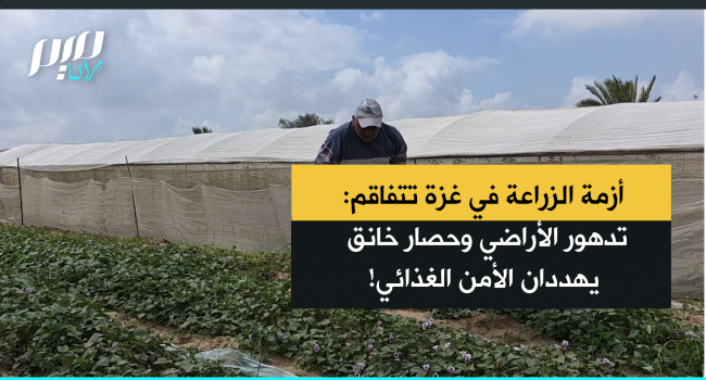 "مزارع غزة دُمّرت وسكانها جُوّعوا".. عدسة "ميم" تسلط الضوء على تعمّق أزمة الزراعة في قطاع غزة، في ظل تدهور الأراضي الزراعية وسيطرة الاحتلال على نحو 60% منها، إضافة إلى فرض حصار خانق، ما أدى إلى تراجع الإنتاج وتفاقم سوء التغذية. ويعد دعم الزراعة ضرورة للحفاظ على الأمن الغذائي وتحسين ظروف عيش السكان.