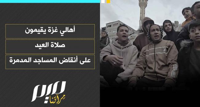 على أنقاض مسجد ابن تيمية الذي دمره الاحتلال.. أهالي دير البلح في غزة يؤدون صلاة عيد الفطر.