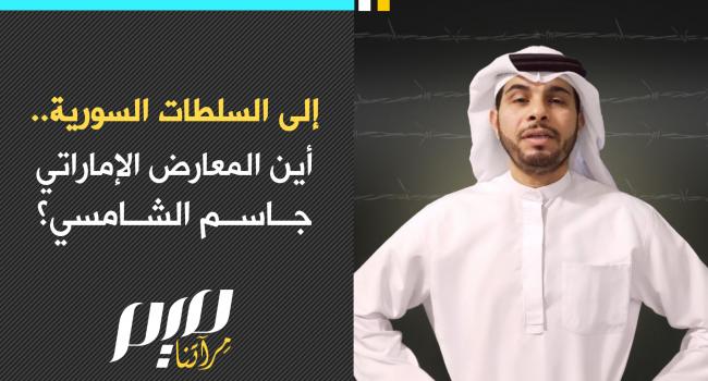 3 شهور على اعتقاله وإخفائه قسريا.. زوجة المعارض الإماراتي تناشد السلطات السورية الكشف عن مكانه، وسط مطالبات واسعة بالإفراج عنه، وعدم تسليمه لنظام أبناء زايد، خشية تعرضه للسجن والتعذيب، وربما التصفية.