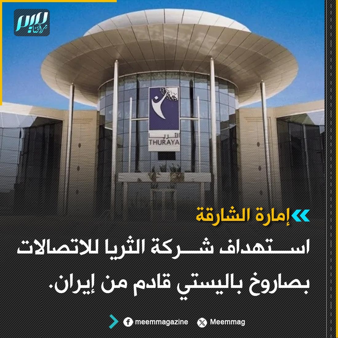 إمارة الشارقة: استهداف شركة الثريا للاتصالات بصاروخ باليستي قادم من إيران.