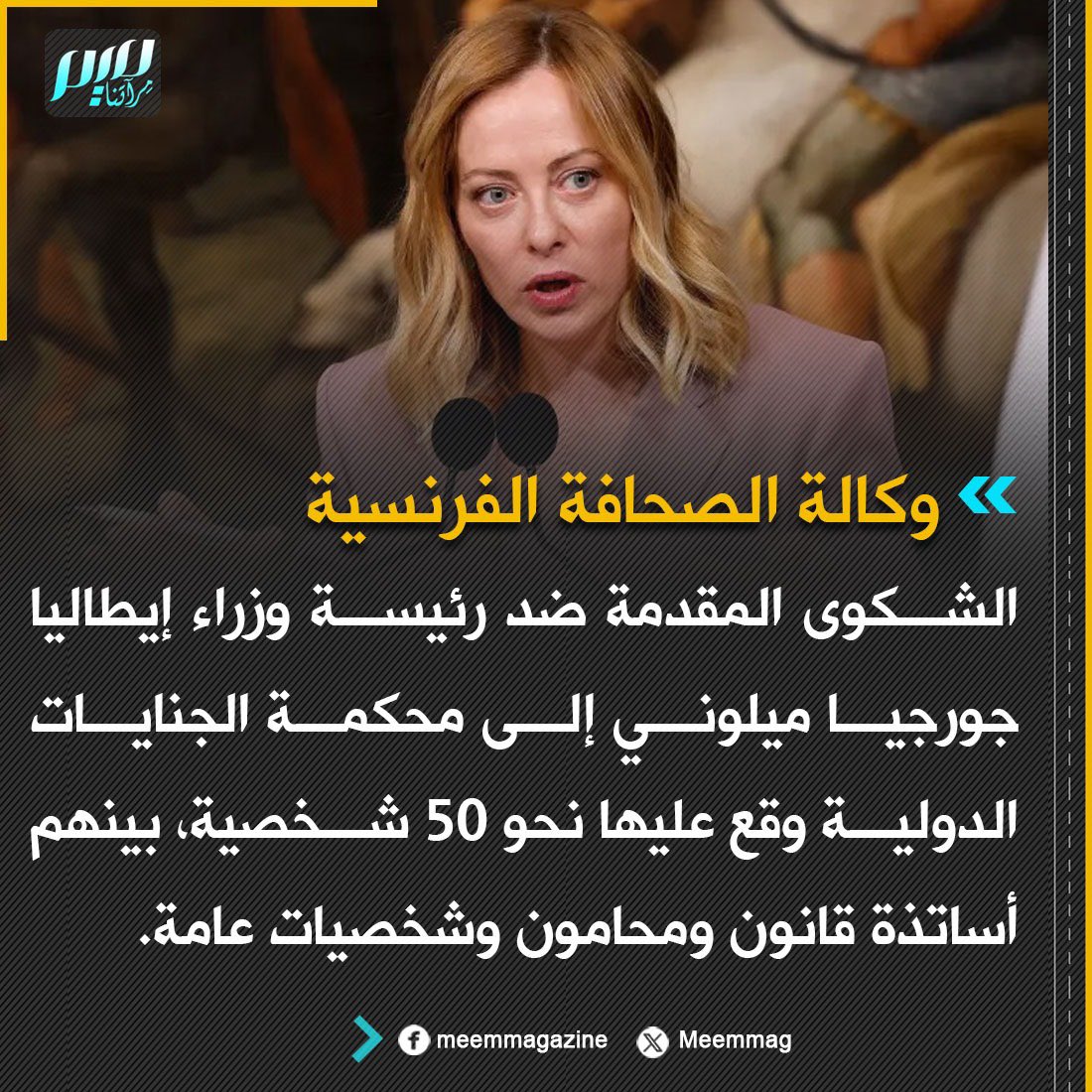 ويتهم الموقعون على الشكوى ميلوني ومسؤولين آخرين بالتواطؤ عبر توريد الأسلحة إلى إسرائيل.