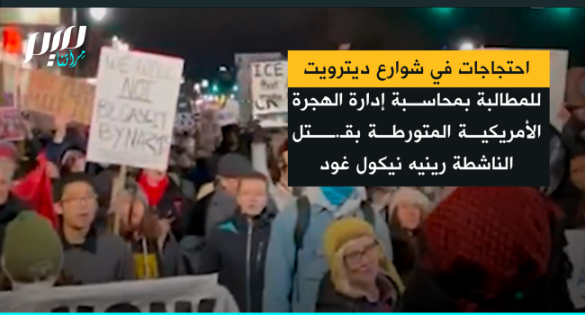 وسط هتافات غاضبة، سكان ديترويت يجوبون الشوارع للمطالبة بتحقيق العدالة، ومحاسبة وكالة الهجرة والجمارك الأمريكية في مينيابوليس، التي قـ.ــتل أحد ضباطها الناشطة الأمريكية رينيه نيكو غود بدم بارد.