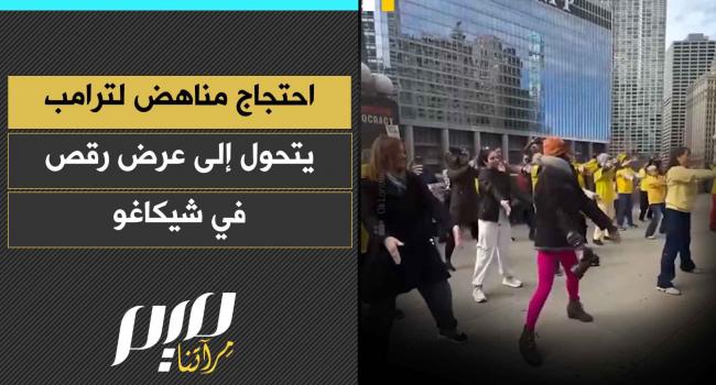مظاهرة ضد الرئيس الأمريكي دونالد ترامب أمام برج ترامب في شيكاغو، تتحول بشكل مفاجئ إلى عرض رقص حي.