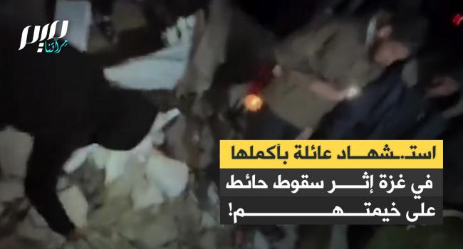 استـ.ـشهاد عائلة بأكملها في غزة إثر سقوط حائط على خيمتهم بسبب المنخفض الجوي القاسي، فيما هرعت طواقم الدفاع المدني والأهالي لانتشال الضحايا من تحت الركام.