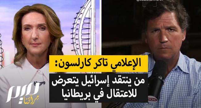 الإعلامي الأمريكي تاكر كارلسون: من الجرائم التي قد تؤدي إلى اعتقالك في بريطانيا الآن؛ انتقاد إسرائيل. إذا قلت إنك تؤيد العمل من أجل فلسطين؛ فقد يتم اعتقالك، فلقد تم اعتقال الكثير من الناس. بعبارة أخرى؛ ليس من القانوني في بريطانيا انتقاد دولة أخرى.