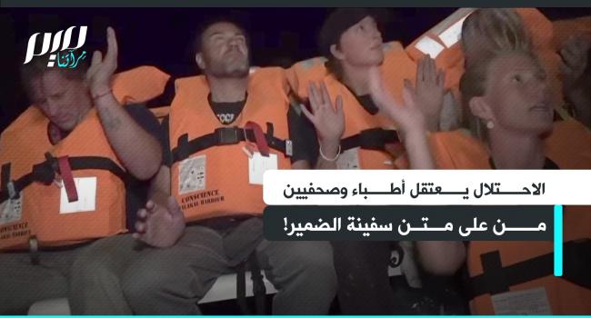 مقطع فيديو يوثّق اللحظات الأخيرة الواردة من على متن سفينة "الضمير" التي كان على متنها صحفيون وأطباء متجهون لكسر الحصار عن غزة، قبل أن يعتقلهم جيش الاحتلال.