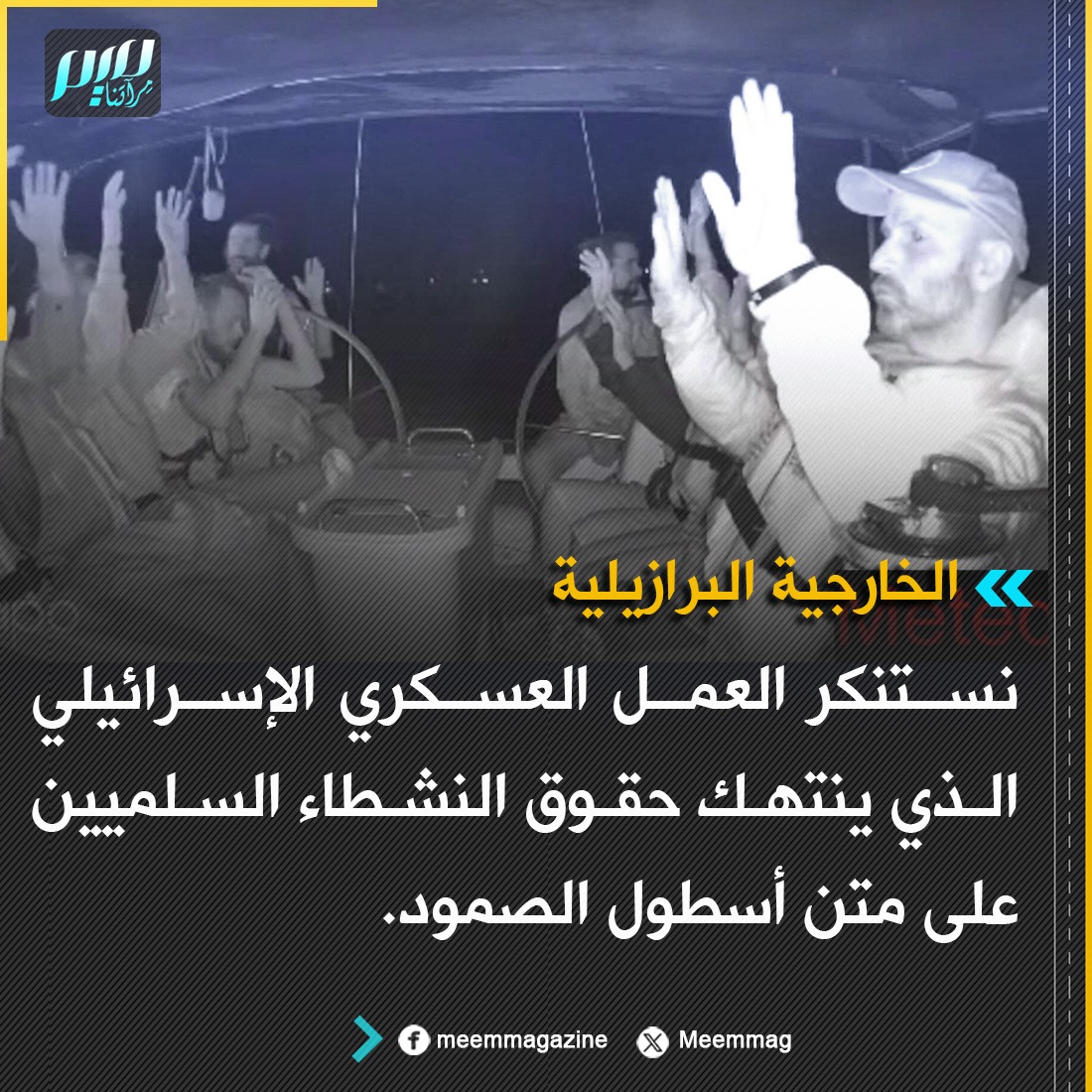 الخارجية البرازيلية: نستنكر العمل العسكري الإسرائيلي الذي ينتهك حقوق النشطاء السلميين على متن أسطول الصمود.