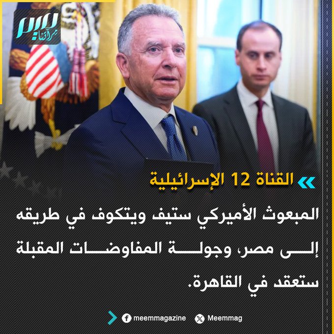 القناة 12 الإسرائيلية: المبعوث الأميركي ستيف ويتكوف في طريقه إلى مصر، وجولة المفاوضات المقبلة ستُعقد في القاهرة