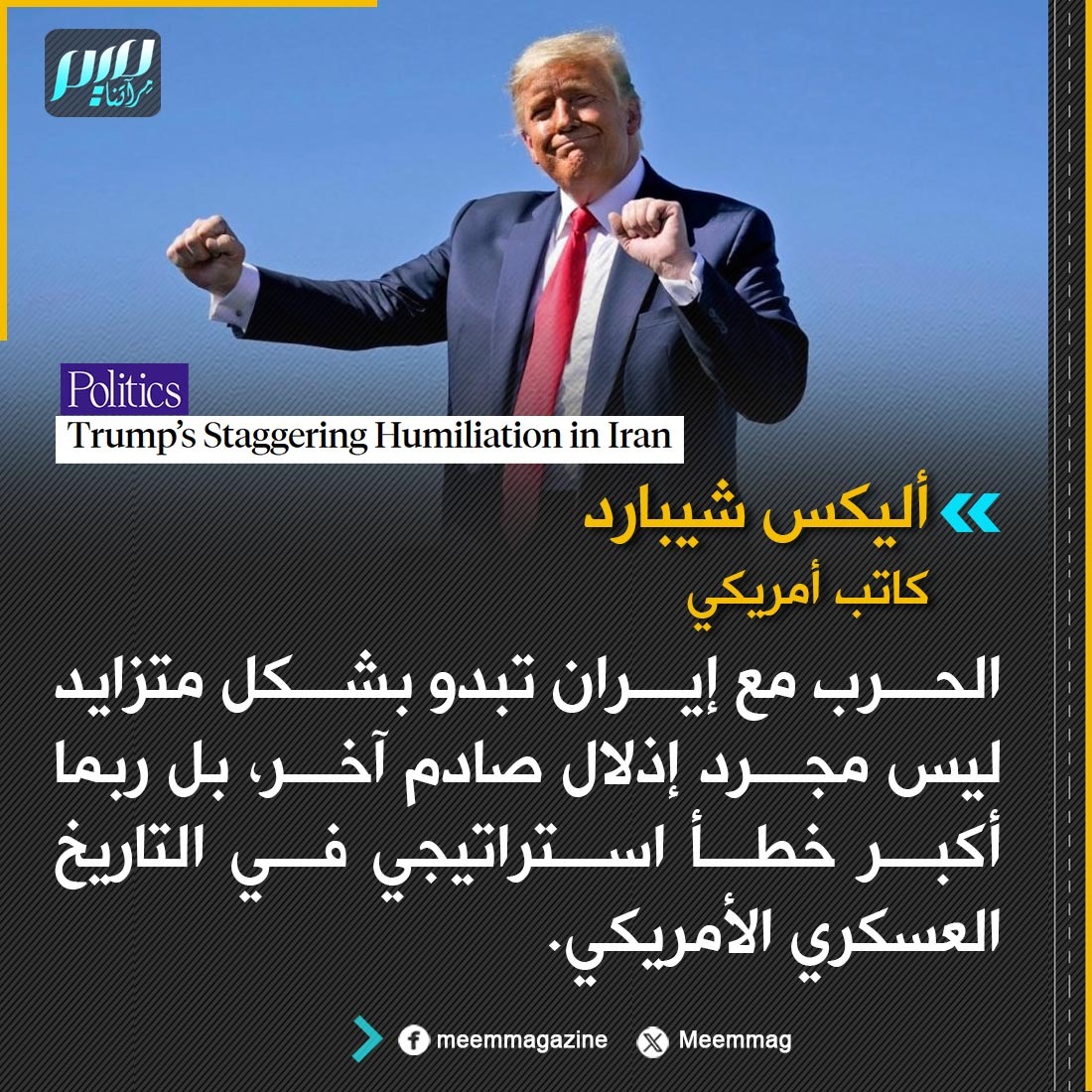 الكاتب الأمريكي أليكس شيبارد: الحرب مع إيران تبدو بشكل متزايد ليس مجرد إذلال صادم آخر، بل ربما أكبر خطأ استراتيجي في التاريخ العسكري الأمريكي.