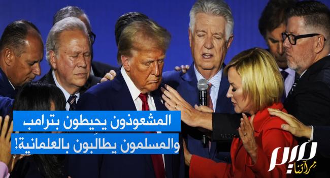 حاضروا على المسلمين على مدى عقود عن ضرورة بفصل الدين عن السلطة.. فإذا بترامب يقف وسط قساوسة يتبركون به ويشبهونه بالمسيح!