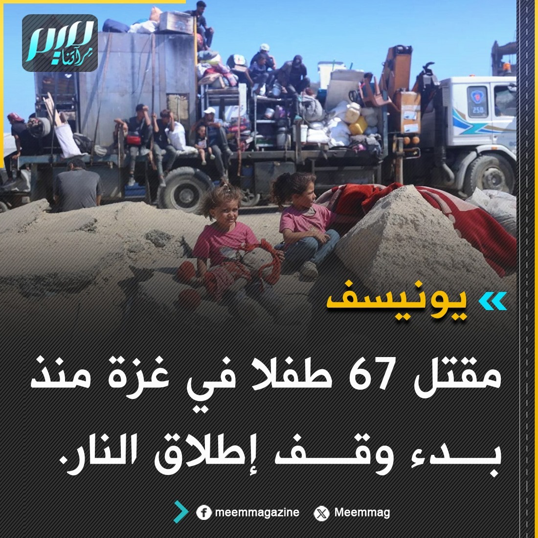 اليونيسف: مقتل 67 طفلا في غزة منذ بدء وقف إطلاق النار.