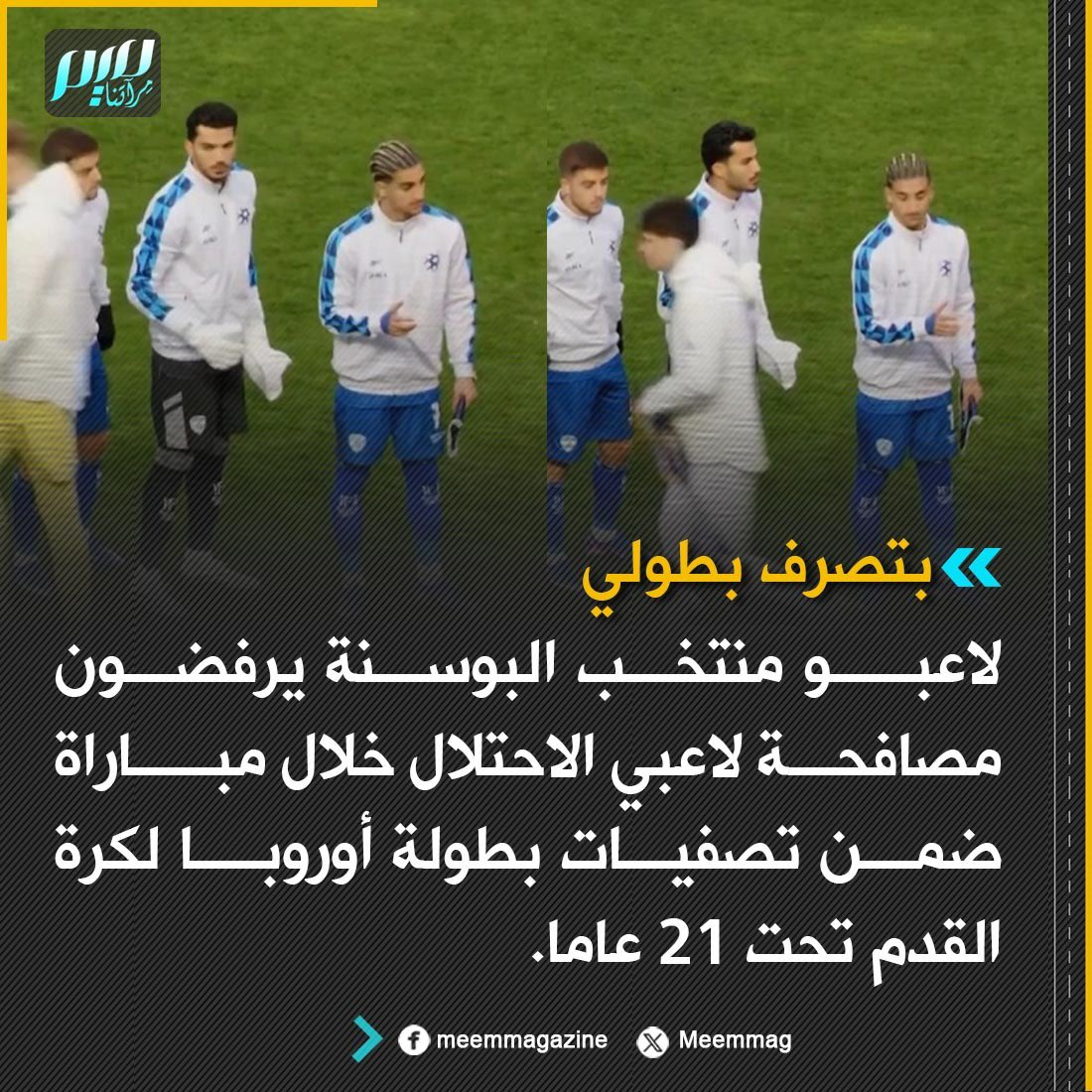 بتصرف بطولي: لاعبو منتخب البوسنة يرفضون مصافحة لاعبي الاحتلال خلال مباراة ضمن تصفيات بطولة أوروبا لكرة القدم تحت 21 عاما.