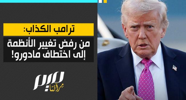 نوثق لكم بالتصريحات تقلبات ترامب وأكاذيبه: من التهجم على هيلاري كلينتون وتأييدها لسياسة تغيير الأنظمة والتدخلات العسكرية خلال حملته الانتخابية، إلى اختطاف مادورو لتغيير النظام في فنزويلا!