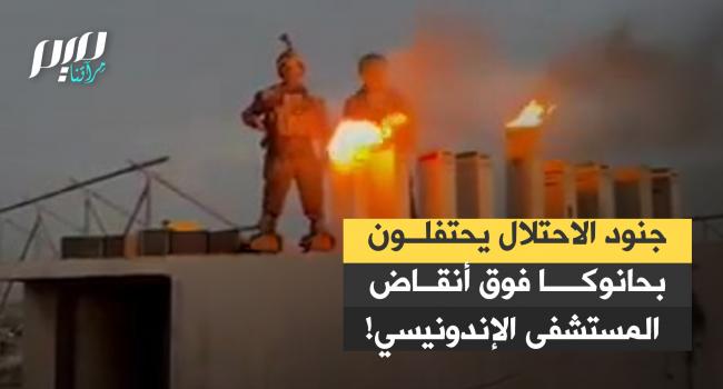 جنود الاحتلال يحتفلون بعيد الحانوكا فوق أنقاض المستشفى الإندونيسي في غزة.