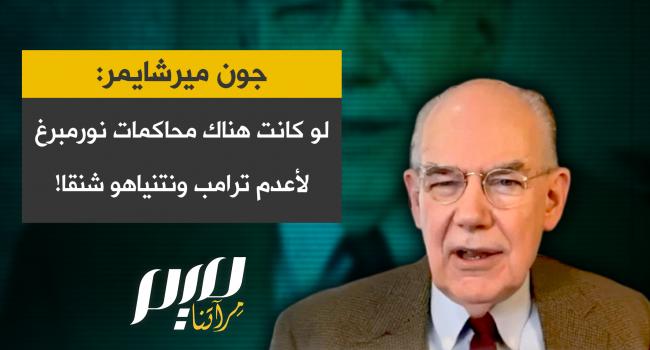 المفكر الأميركي جون ميرشايمر: "لو كانت هناك محاكمات نورمبرغ، حيث يمثل الإسرائيليون والأمريكيون أمام المحكمة، لحُكم على ترامب ونتنياهو والعديد من مستشاريهما، بالإعدام شنقا".
