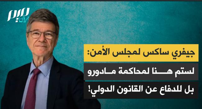 رجل الاقتصاد والمحلل الأمريكي جيفري ساكس في كلمة تاريخية أمام مجلس الأمن حول التدخل الأمريكي في فنزويلا: "ليس مطلوبا من أعضاء المجلس محاكمة نيكولاس مادورو، ولا تقييم ما إذا كان الهجوم الأمريكي الأخير والحصار البحري المستمر على فنزويلا يُفضي إلى الحرية أم إلى الاستعباد، بل الدفاع عن القانون الدولي، وتحديدا ميثاق الأمم المتحدة. السلام وبقاء البشرية يتوقفان على هذا."