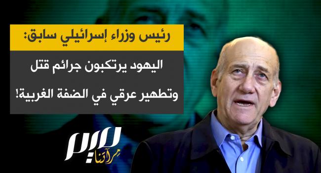 رئيس الوزراء الإسرائيلي السابق إيهود اولمرت يعترف، في مقابلة مع قناة 12 الإسرائيلية: "مئات اليهود في الضفة الغربية يرتكبون أعمال قتل وتطهير عرقي وجرائم ضد الإنسانية وجرائم حرب."