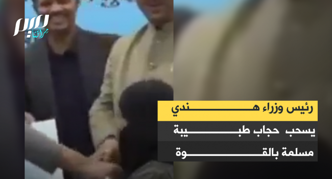 رئيس وزراء ولاية بيهار الهندية نيتيش كومار يسحب حجاب طبيبة مسلمة بالقوة أثناء تسليمها خطاب تعيين في حفل للأطباء.