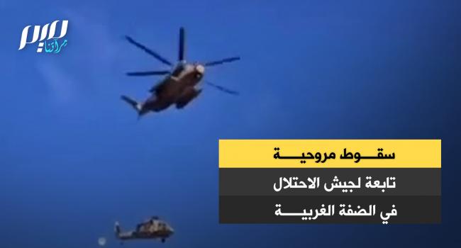 مشاهد توثق سقوط مروحية تابعة لجيش الاحتلال وتحطمها جنوب الضفة الغربية.