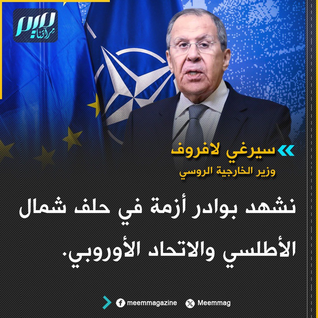 سيرغي لافروف: نشهد بوادر أزمة في حلف شمال الأطلسي والاتحاد الأوروبي.