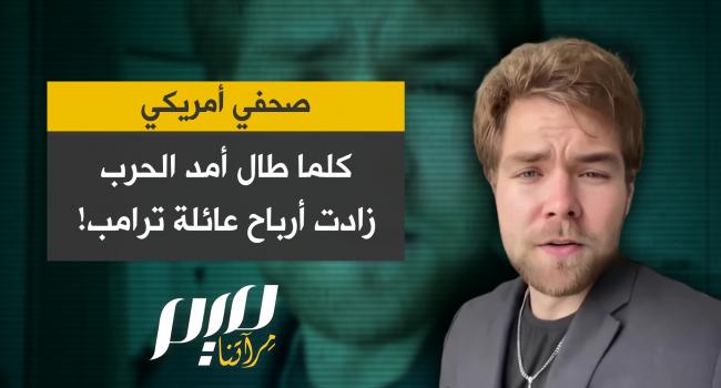الصحفي الأمريكي إيثان ليفينز: "كلما طال أمد الحرب، كلما استفادت عائلة دونالد ترامب، إذ يشير تقرير لـ PBS إلى دعم دونالد ترامب الابن وإريك ترامب لشركة طائرات مسيّرة تبيع لدول الخليج، بينما يسعى صهره جاريد كوشنر لاستثمارات خليجية رغم مشاركته في جهود دبلوماسية مرتبطة بالحرب."