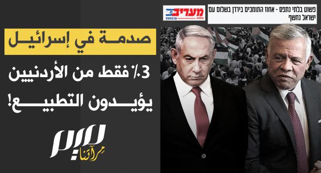 صدمة في إسرائيل.. 3 بالمئة فقط من الأردنيين يؤيدون التطبيع بعد 31 عاما من معاهدة وادي عربة، النسبة الأضعف في أي بلد عربي!