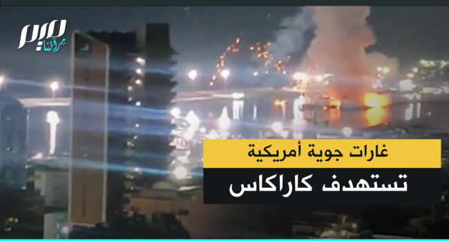 مقطع فيديو يوثق تصاعد أعمدة الدخان ودخول السكان في حالة ذعر، عقب شن غارات جوية أمريكية على العاصمة الفنزويلية كاراكاس.